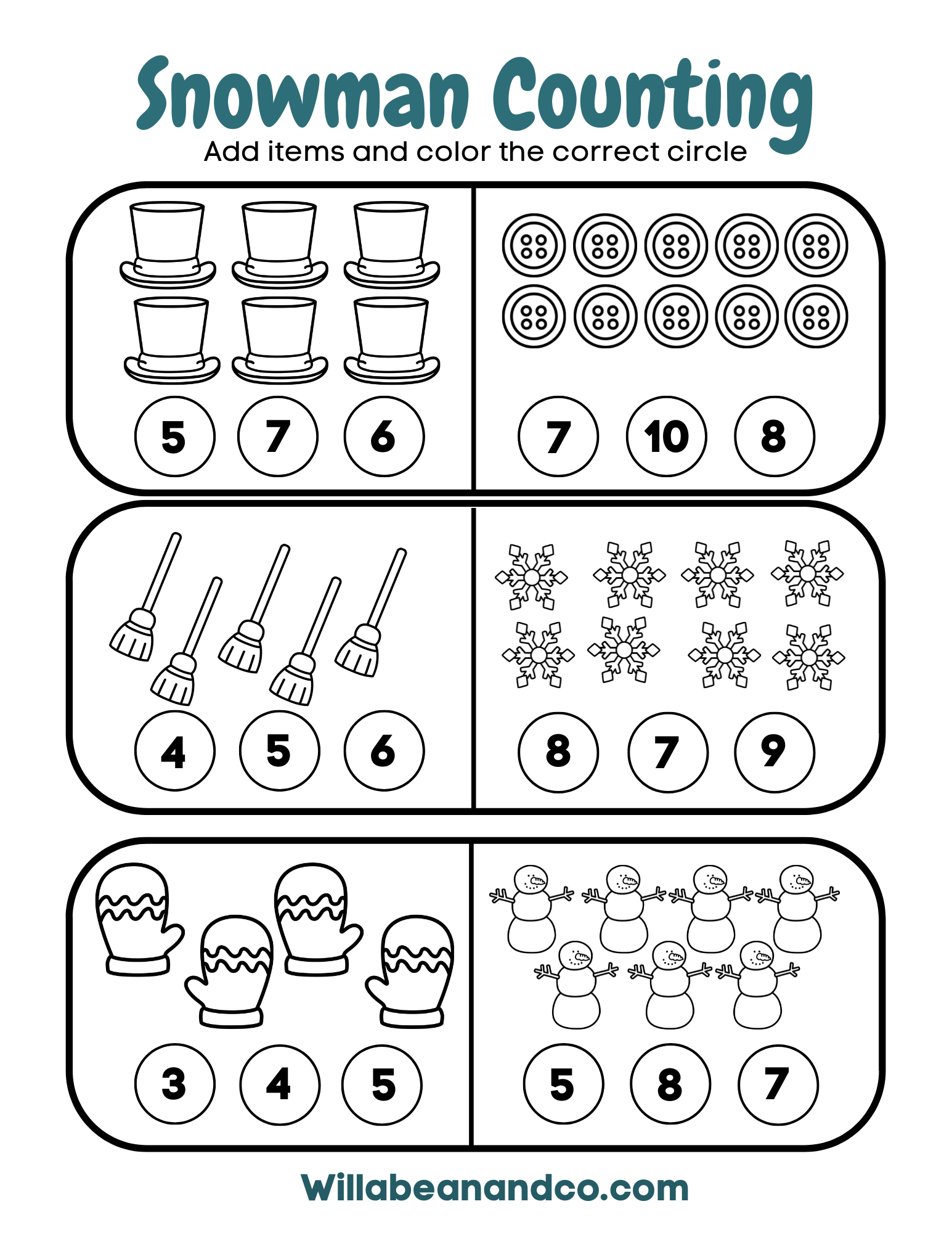 Counting Counting Winter Download here Winter Counting Download here Let's Count with Snowmen Download here Counting Mittens Download here Grab Your Printable HereSubscribe to get your FREE worksheets and our latest content by email.SubscribeWe won't send you spam. Unsubscribe at any time.